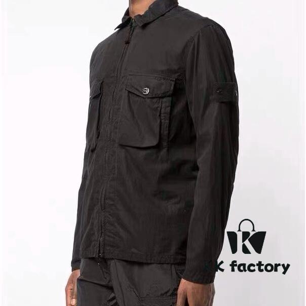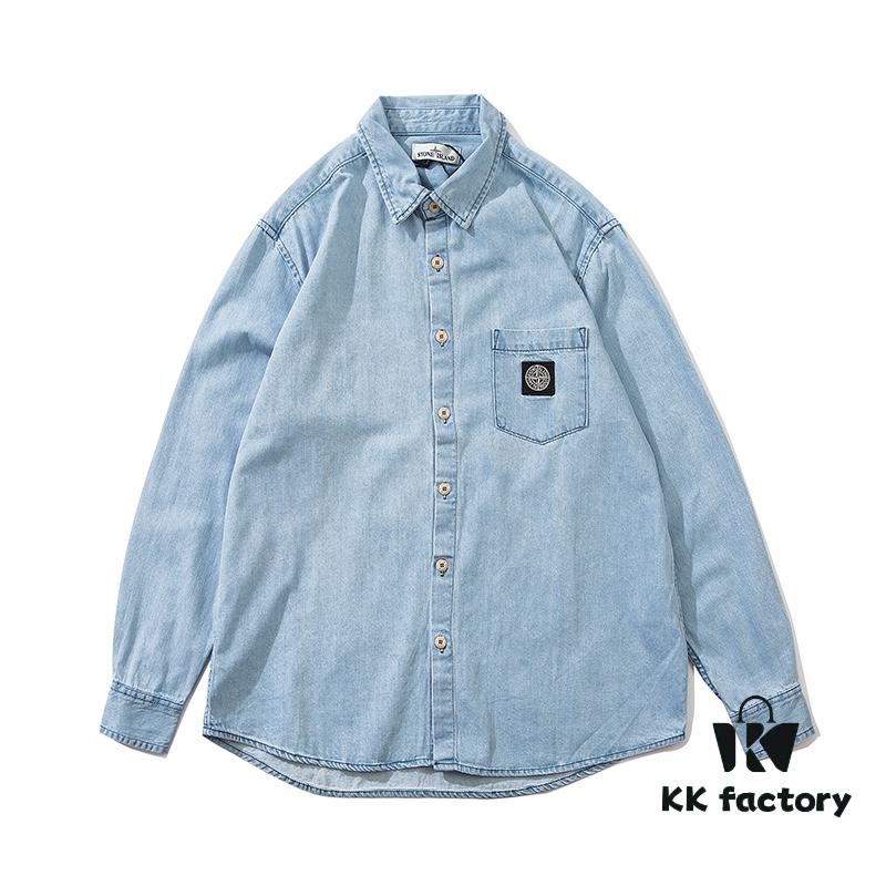 Stone Island Classic Embroidered Logo Patch Denim Shirt Jacket Long Sleeve Cardigan Shirt, Two Colors, M-XXL