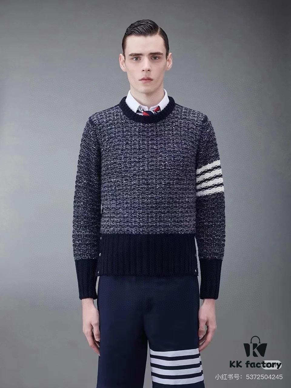 THOM BROWNE TB 24SS Snowflake Chunky-Knit Navy Blue Four-Stripes Crewneck Sweater for Couples
