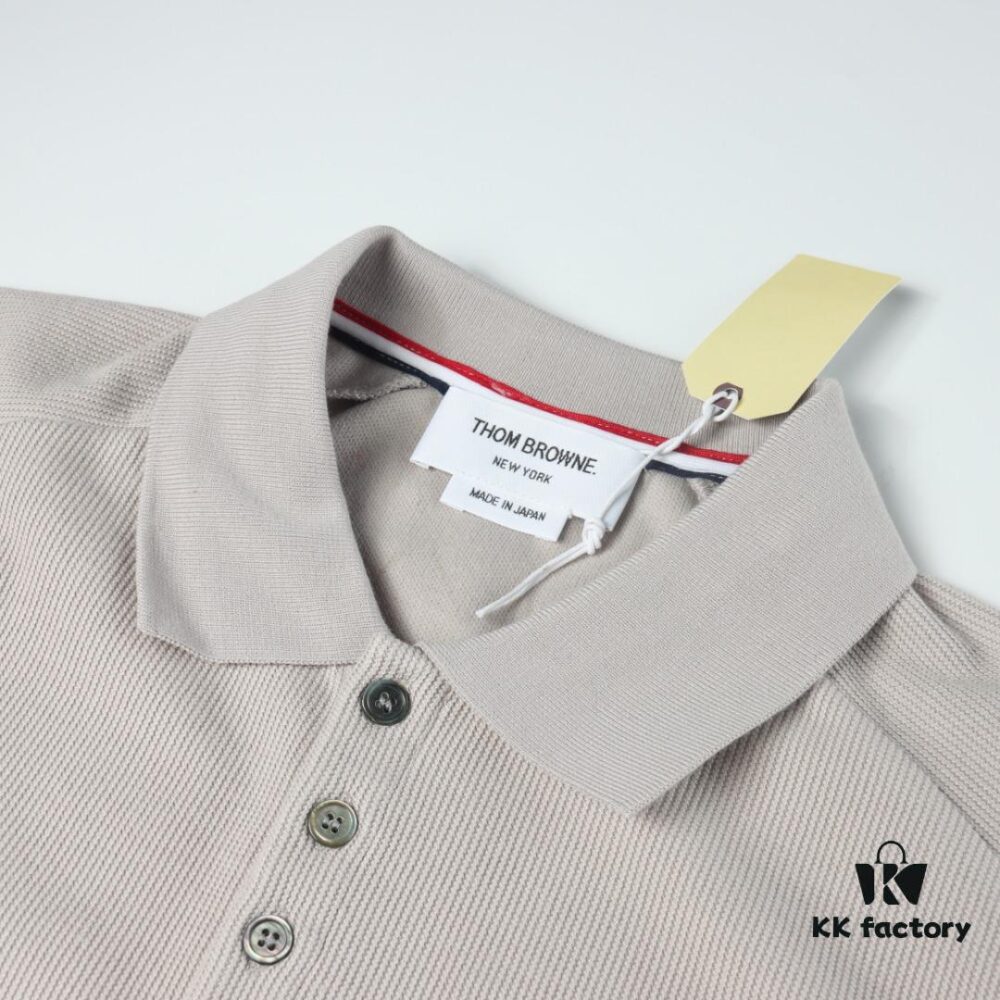 Thom Browne TB Rippled Four-Bar Leather-Look Short Sleeve Polo Shirt