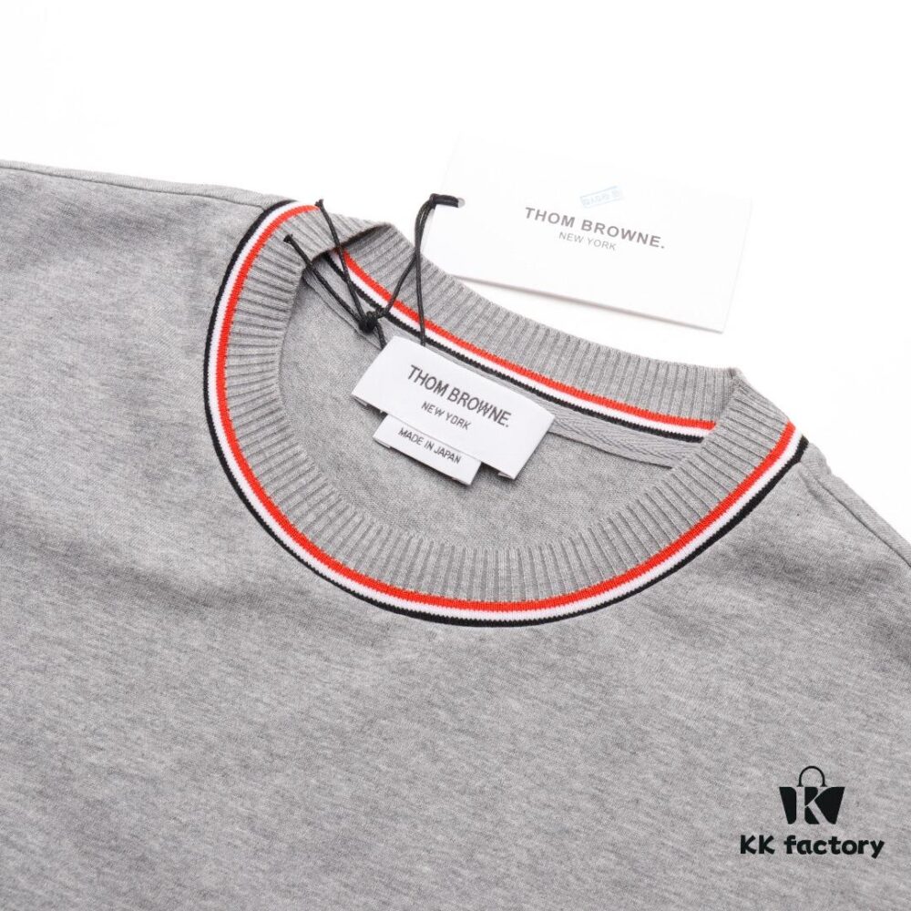 THOM BROWNE TB Red Stripe Woven Crew Neck Short Sleeve T-Shirt