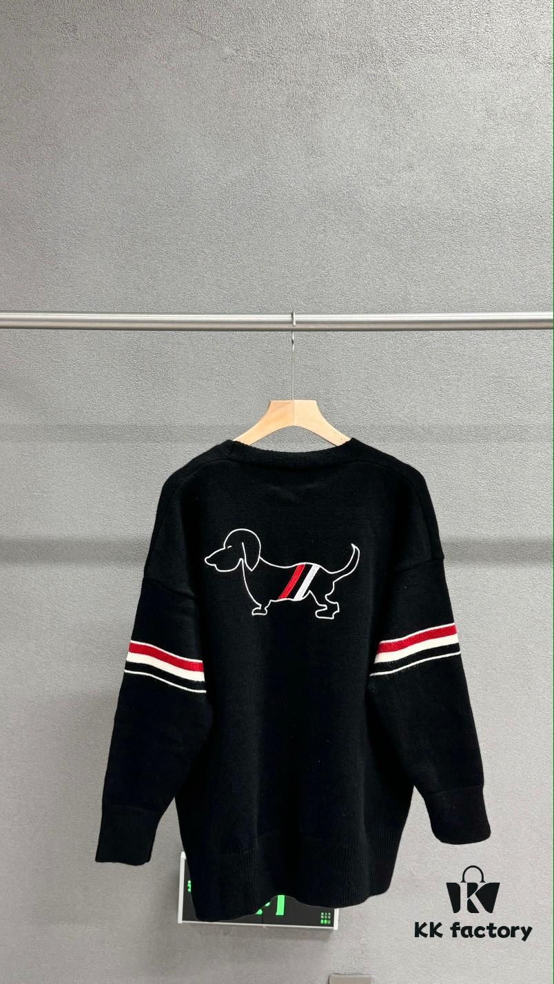 Thom Browne TB Striped Puppy Cardigan Sweater, British Style New Arrival, Wool Blend Preppy Knitwear