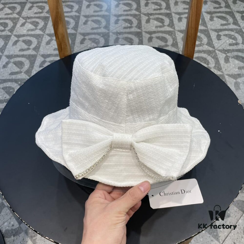 Dior Wide-Brim Sun Hat for Women, Spring and Summer Fashionable Bucket Hat with Bow, Face-Framing UV Protection