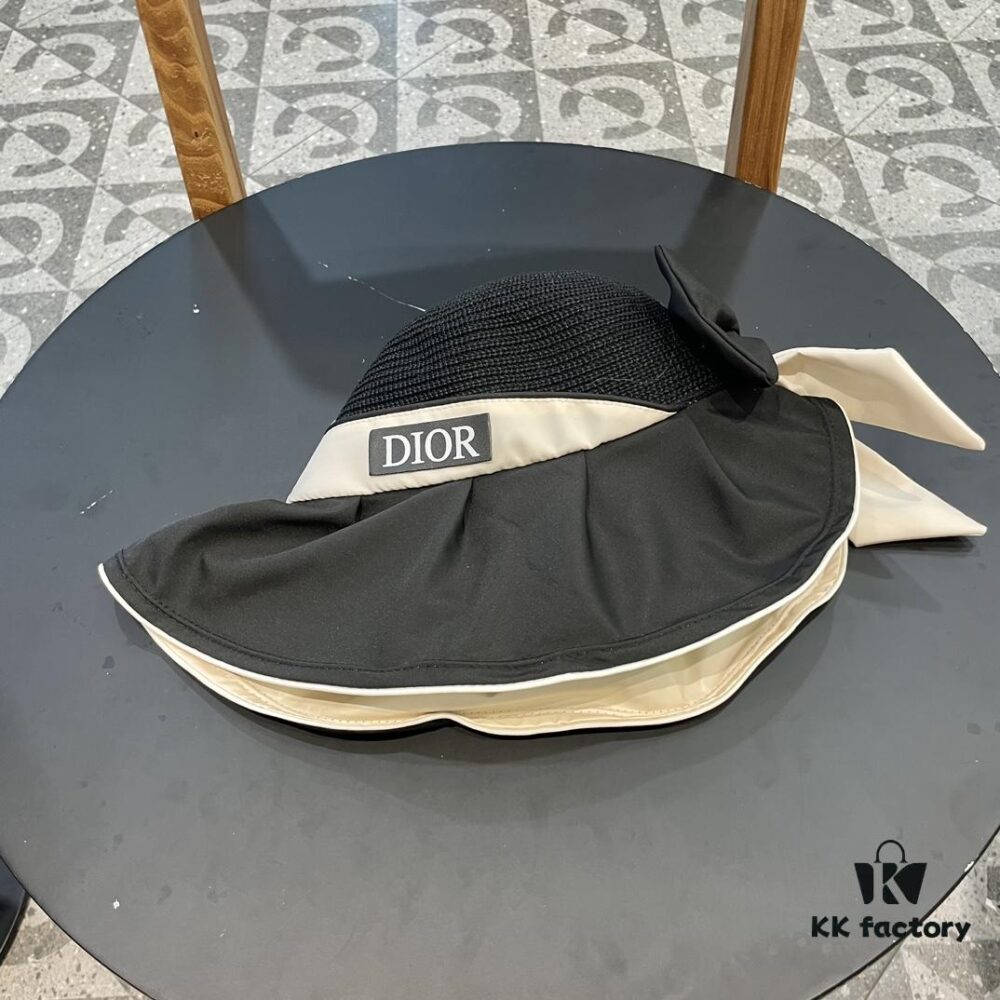 DIOR Bucket Hat 2024 Summer New Sun Protection Fishing Hat with Bow for Men and Women, Wide-Brimmed Beach Hat for Travel, Face-Framing Sun Hat