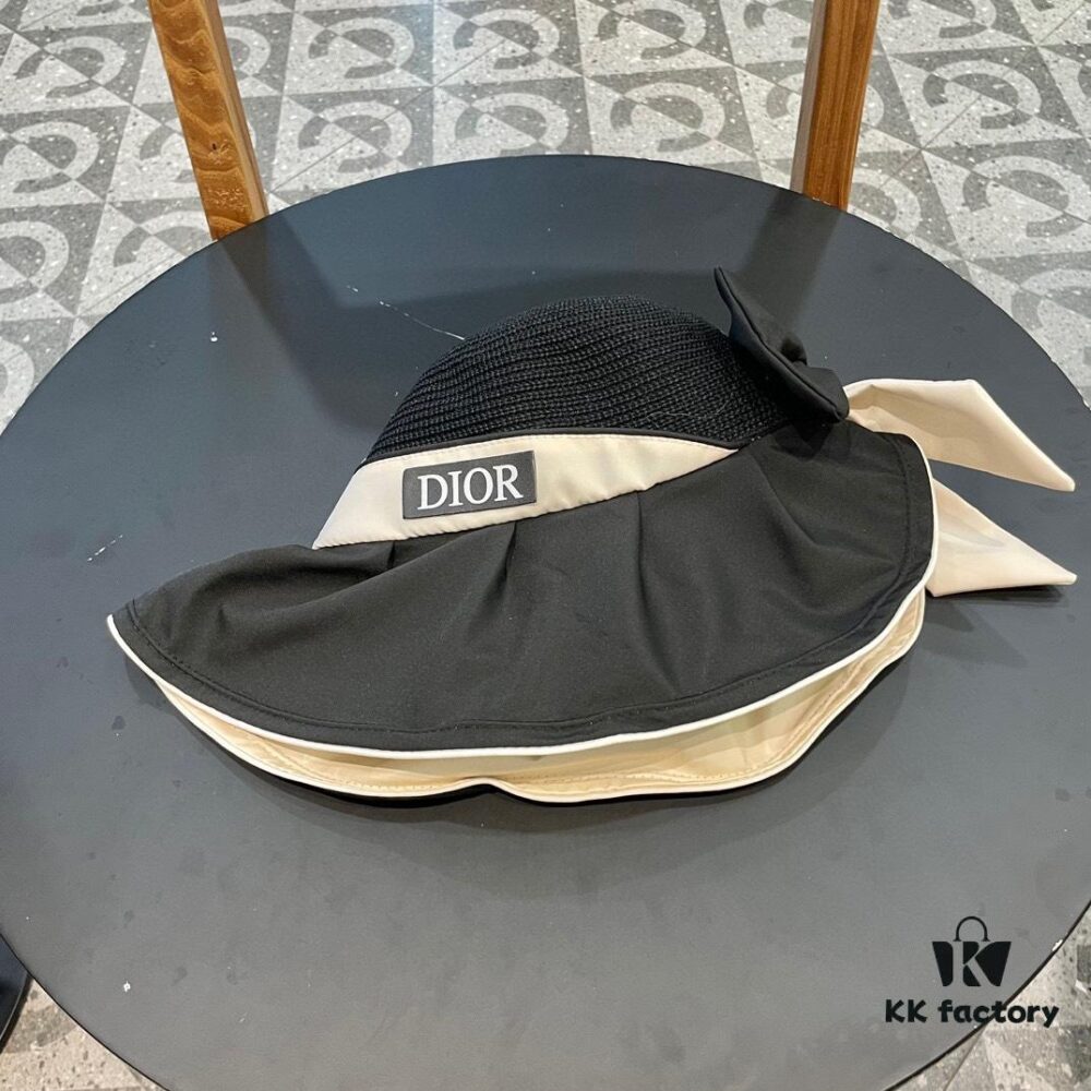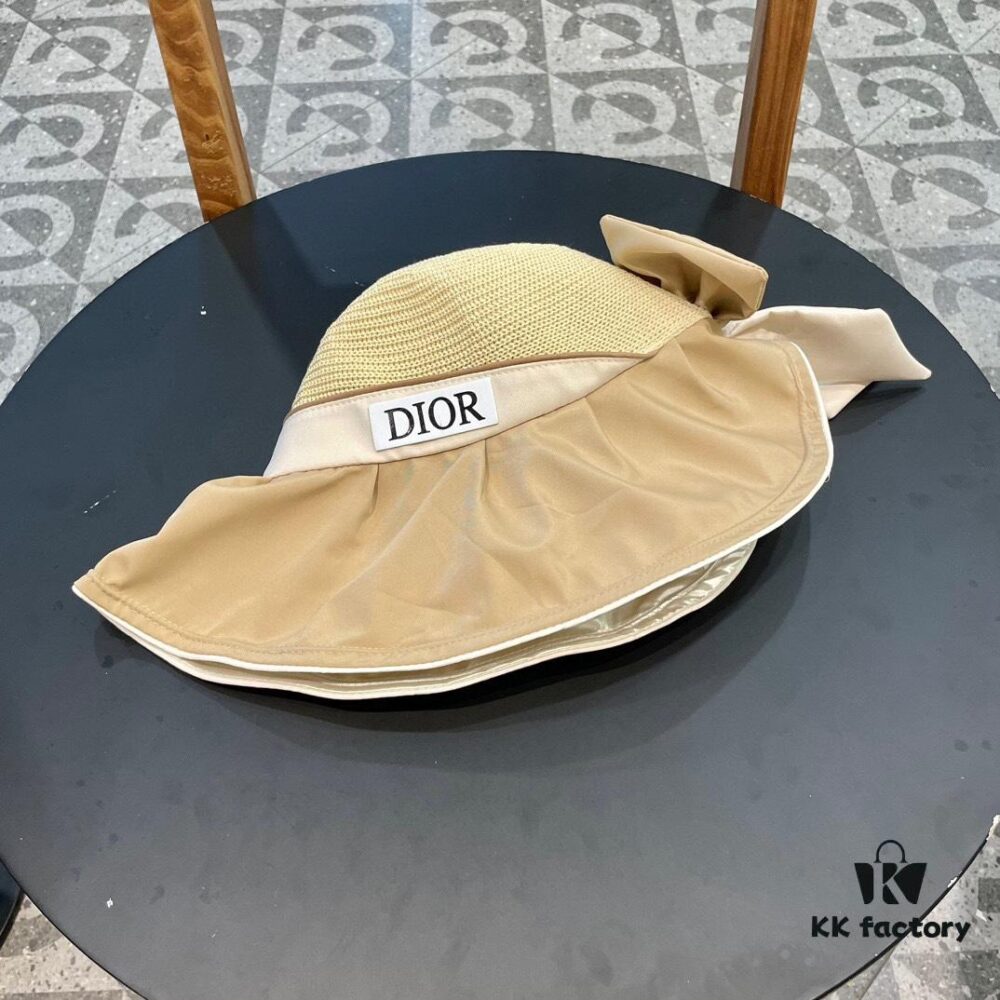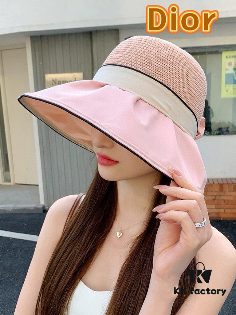 DIOR Bucket Hat 2024 Summer New Sun Protection Beach Hat with Bow for Women, Wide Brim Face-Slimming Sun Hat