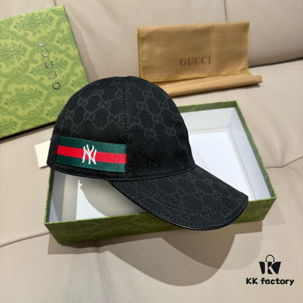 Box Bag Included, NY&Gucci (Gucci) Latest Collaboration Original Order Baseball Cap, 1:1 Mold Customized, Comparable Details to Boutique, Premium Canvas Fabric with Top Layer Leather, Excellent Quality! First Choice for Stylish Men and Women, Versatile and Fashionable. Base Head Circumference 56cm, Patch Adjustable.