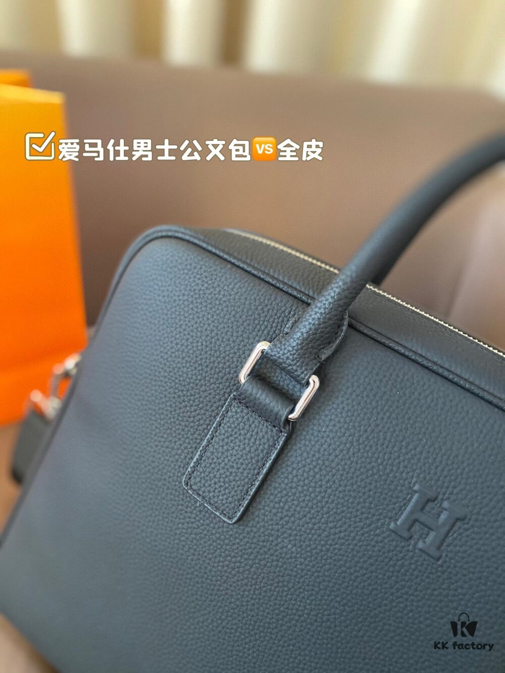 Hermes Men’s Leather Briefcase, Can Be Worn Crossbody or Carried by Hand, Spacious for Documents and Laptops, Classic Black, Ideal for Business Men, Size 39 x 28