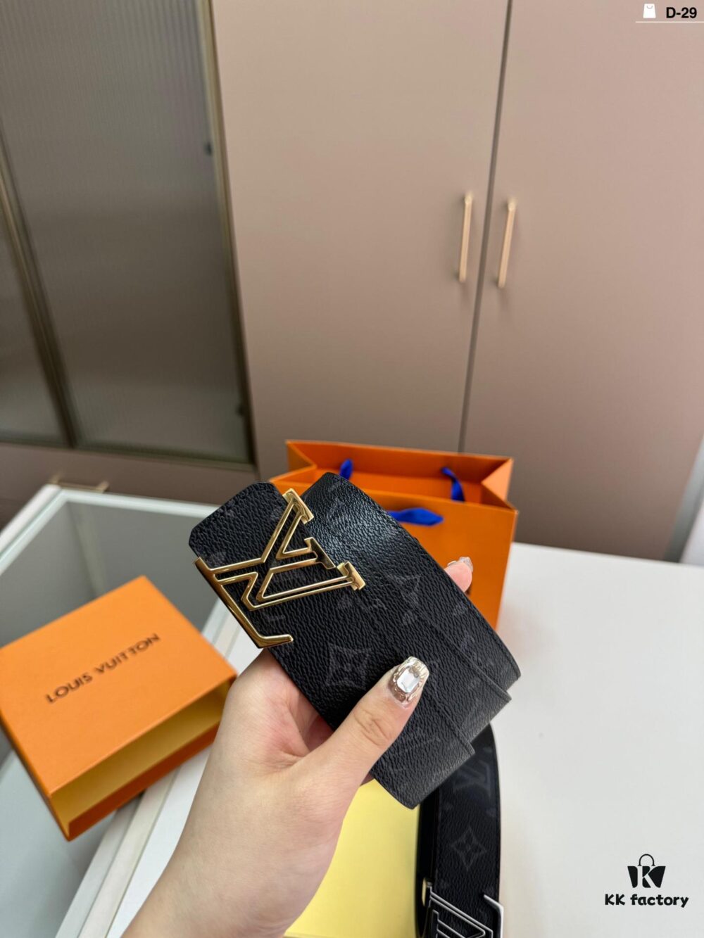 LV Belt Men’s Leather Belt D-29 Full Packaging with Tote Bag