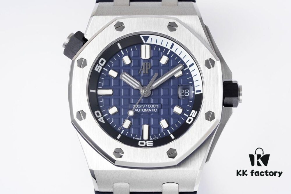 Audemars Piguet Diver – New Model 15720! 42mm x 14.2mm Stainless Steel Case with Anti-Reflective Sapphire Crystal, Black Ceramic Screw-Down Crown, Calibre 4308 Automatic Movement, ‘Méga Tapisserie’ Dial, Luminescent Markers, Rubber Strap